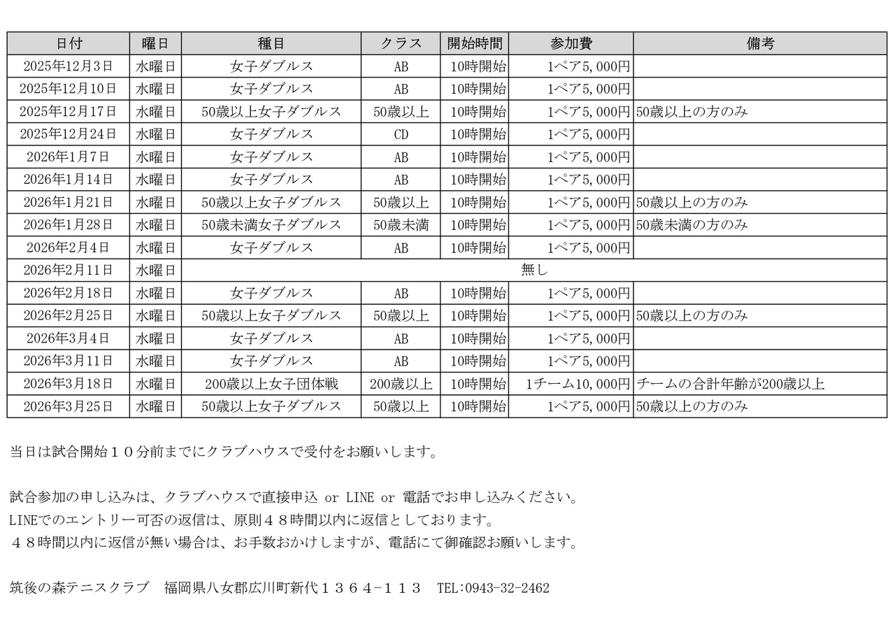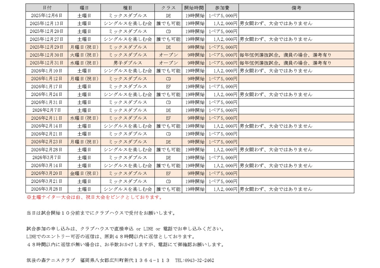 | 筑後の森テニスクラブ LINE ともだち募集中 | ||||||||||